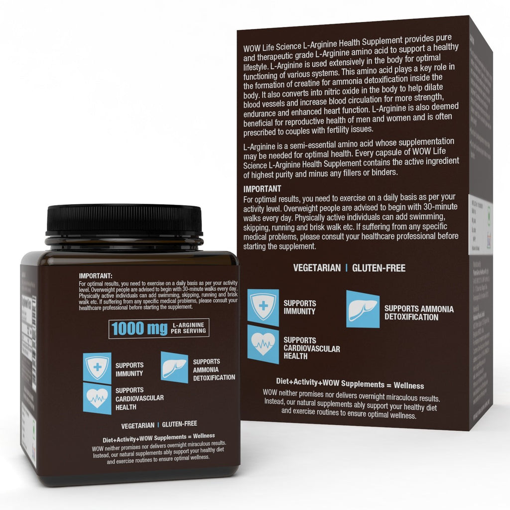 WOW Life Science L-Arginine Amino Acid Supplement 1000mg - 60 Vegetarian Capsules