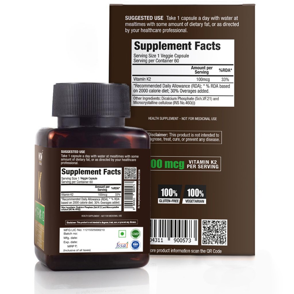 WOW Life Science Vitamin K2 Supplement contains 60 capsules per pack.