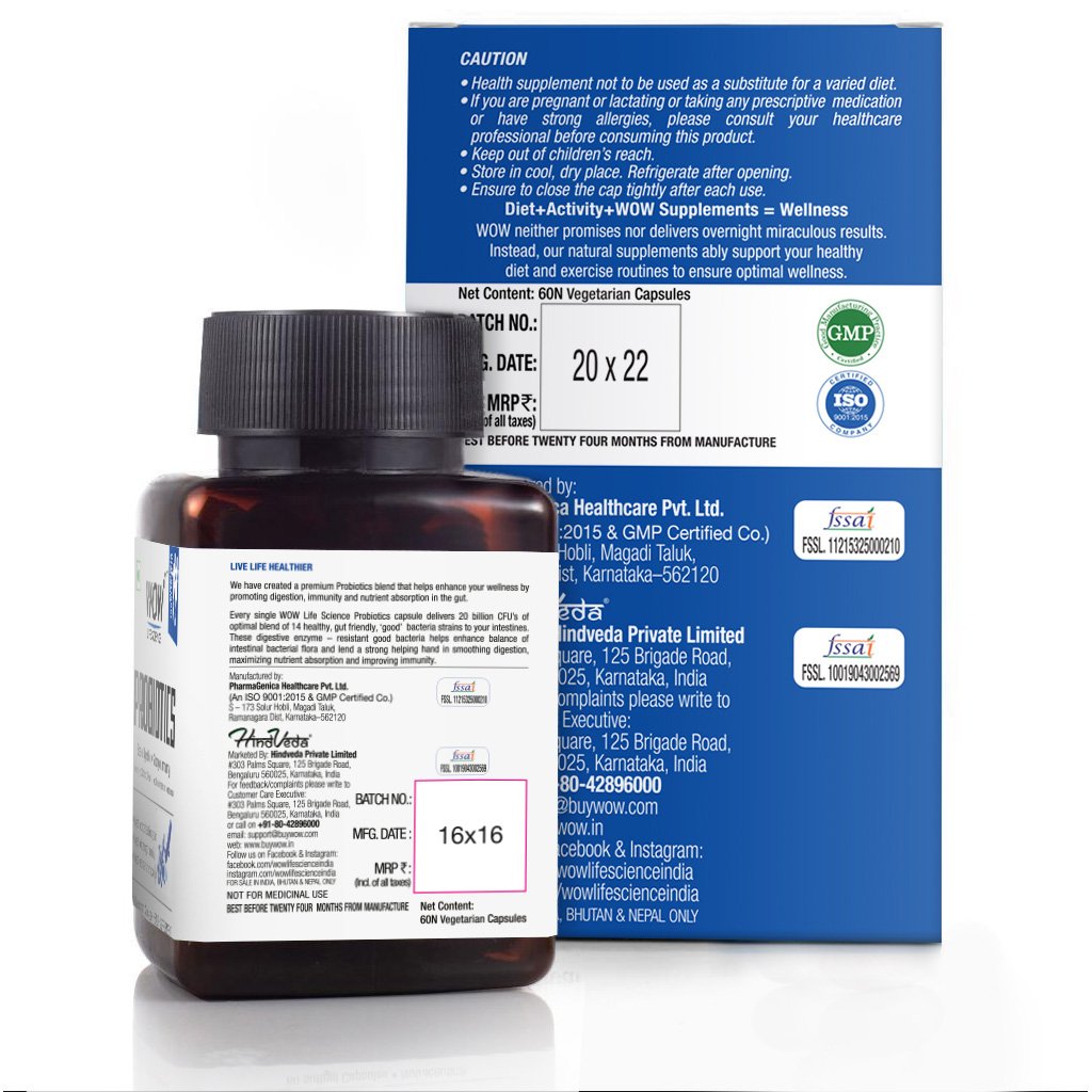 WOW Life Science Probiotic Dietary Supplement is a premium probiotics blend of 14 healthy, gut-friendly and 'good' bacteria strains that help enhance your total wellness by promoting digestion, immunity and nutrient absorption in the gut. Every single WOW Probiotics capsule delivers 20 billion CFUs of ‘good’ bacteria to your intestines. These digestive enzyme-resistant good bacteria enhance balance and improving immunity.