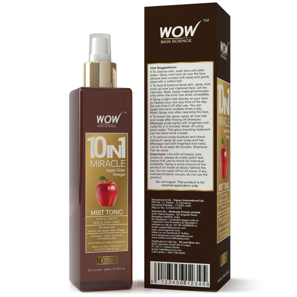 |Wow Skin Science 10 in 1 Miracle Apple Cider Vinegar Mist Tonic improves skin hair and scalp health too busy to spend hours pampering your skin, hair and scalp with different products. You need wow skin science 10-in-1 miracle apple cider vinegar mist tonic a superb multipurpose, product formulated to enhance your skin, hair and scalp. This enriching blend of 9 exceptional beauty care bioactive - apple cider vinegar, aloe vera juice, rose hydrosol, witch hazel extract, green tea extract, pro-vitamin b5, vitamin b3 plus lavender and tea tree essential oils - comes packaged in a sleek and handy spray mist bottle. Use it cleanse, tone, balance and hydrate skin, reduce acne breakouts, remove scalp buildups, check dandruff and enhance hair gloss. Apple cider vinegar. Restores natural ph balance of skin and scalp, tightens open pores, reduces acne breakouts, fades blemishes, smoothens rough hair cuticles, loosens and removes scalp buildups, kills dandruff causing microbes. Aloe vera gel - gives intensive hydration to skin and hair, soothes inflammation, reverses sun damage. Rose hydrosol (rosewater) - hydrates, tones and moisturizes, gives antioxidant protection from free radicals. Lavender essential oil - soothes skin, kills dandruff causing microbes, fades blemishes, brightens skin, softens hair. Tea tree essential oil - disinfects skin, kills dandruff causing microbes, checks acne and breakouts. Green tea extract - fights free radicals, evens skin tone. Witch hazel extract - natural astringent, tightens open pores, reduces acne.